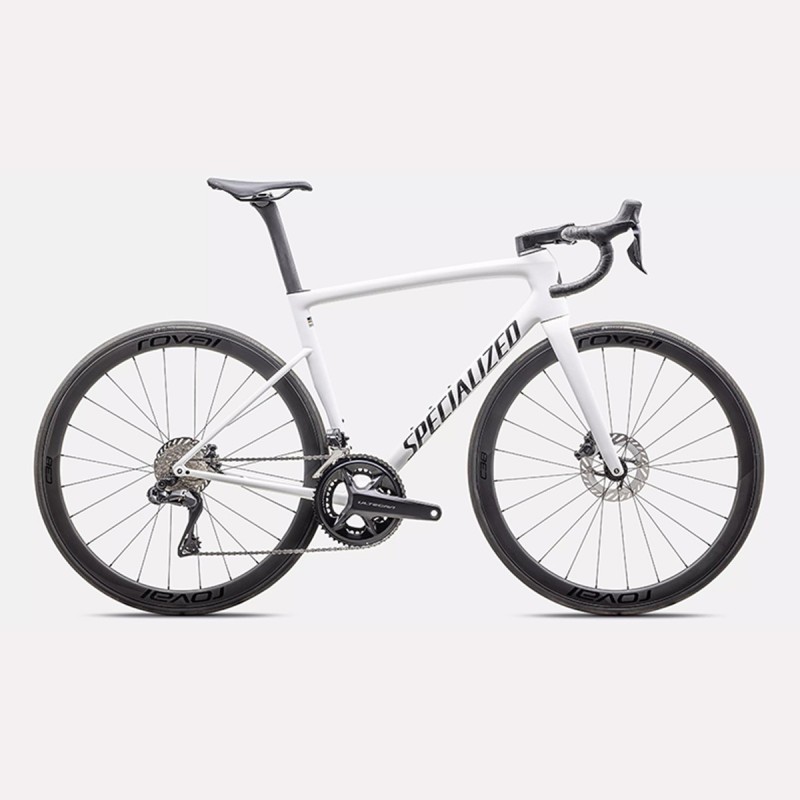 Tarmac SL8 Expert, de couleur blanc, de marque Specialized rapide et sans compromis. Ce Vélo de course dynamique et maniable, vous emmèneras plus loin le plus vite possible.
