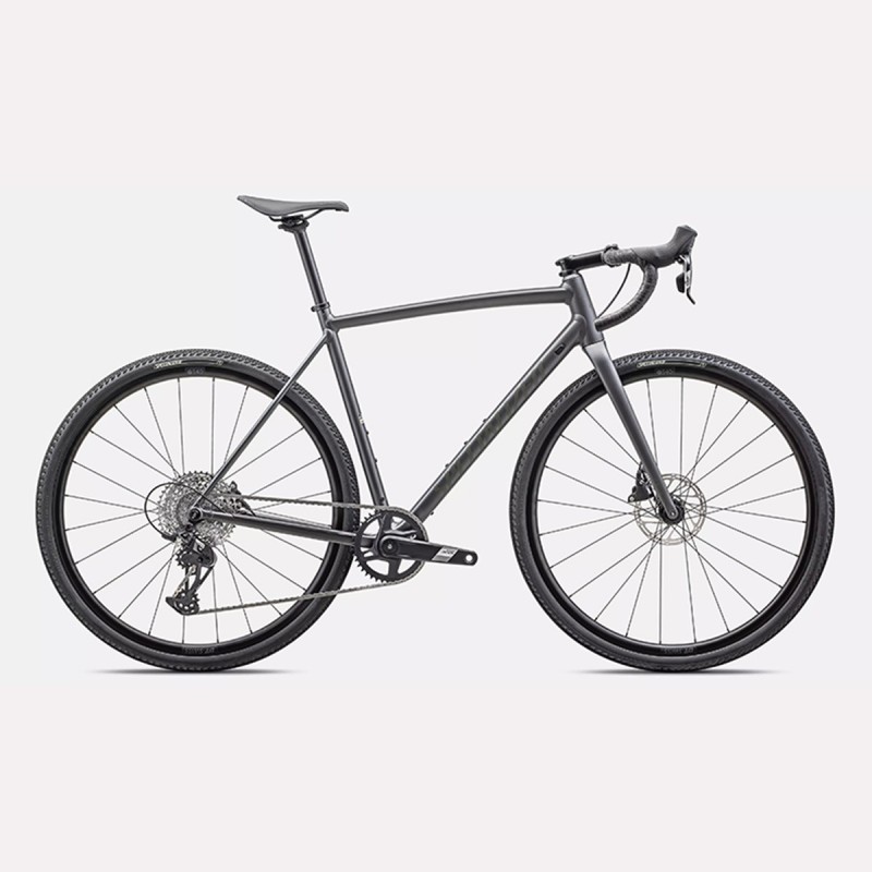 Crux DSW Comp, de couleur gris et de marque Specialized, très léger et maniable. Ce Vélo de Cyclocross ultra léger et dynamique.