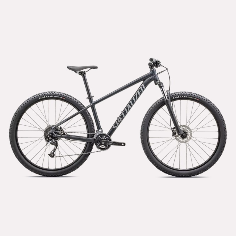 Rockhopper Base, de couleur Gris, de marque Specialized, maniable et performant. Ce Vélo de tout terrain vous emeneras dans tous vos aventures hors piste.