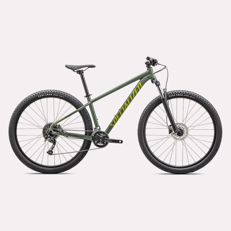 Rockhopper Base, de couleur Vert, de marque Specialized, maniable et performant. Ce Vélo de tout terrain vous emeneras dans tous vos aventures hors piste.